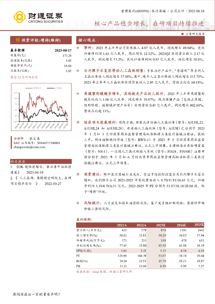财通证券:爱博医疗(688050)-核心产品稳步增长,在研项目持续推进.pdf