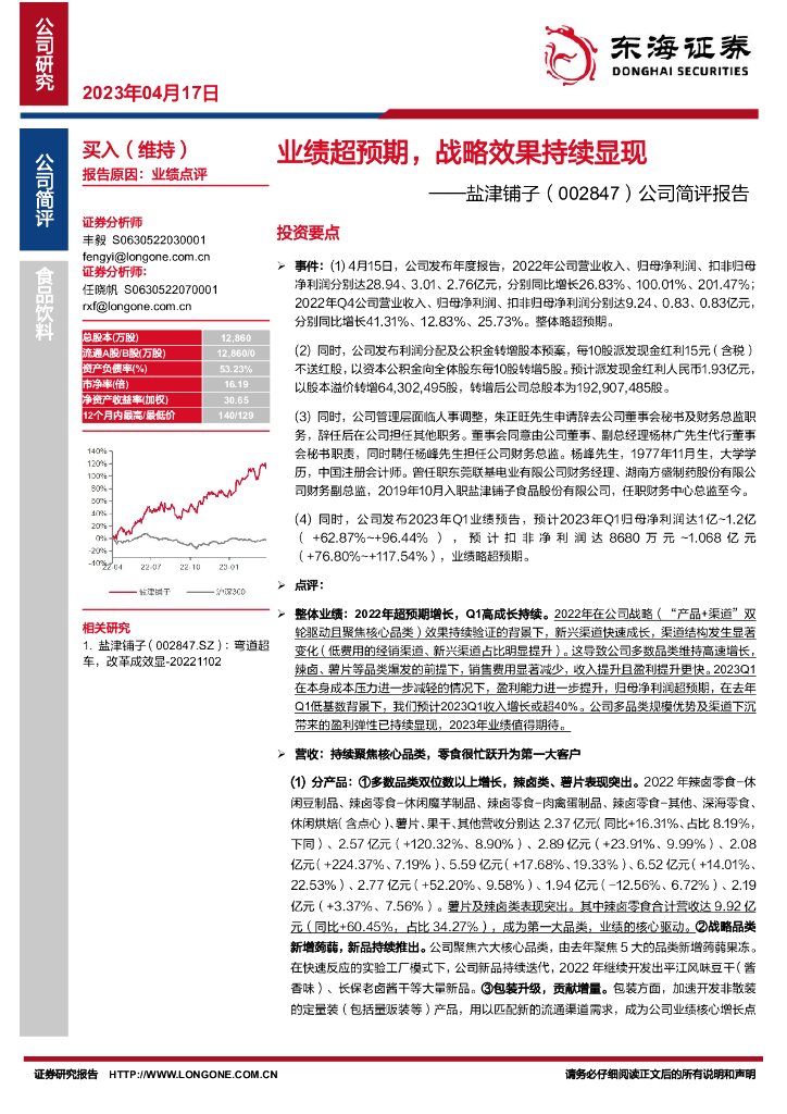 东海证券:盐津铺子(002847)-公司简评报告:业绩超预期,战略效果持续显现.pdf