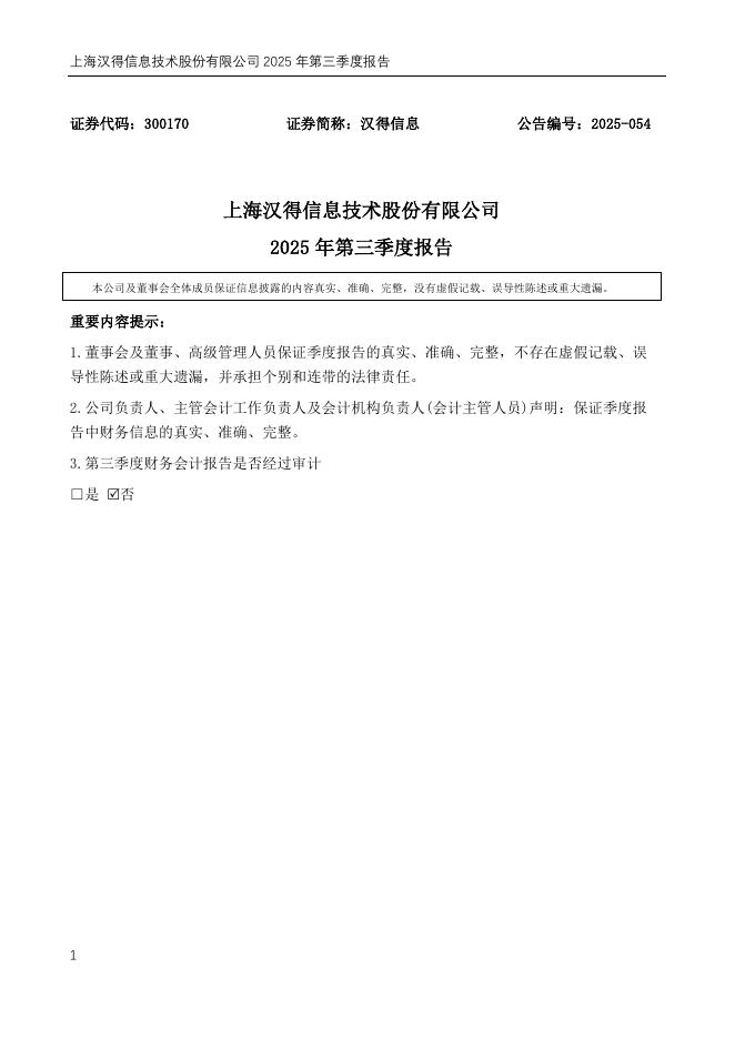 300170-汉得信息:2025年三季度报告.pdf