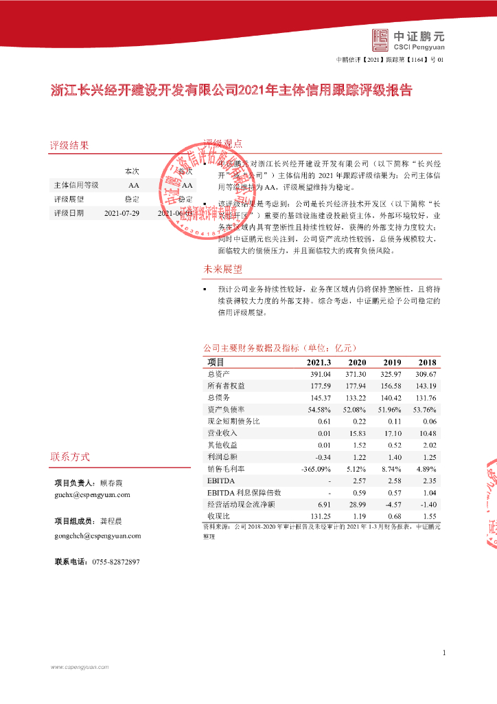 鹏元:浙江长兴经开建设开发有限公司主体评级报告.pdf