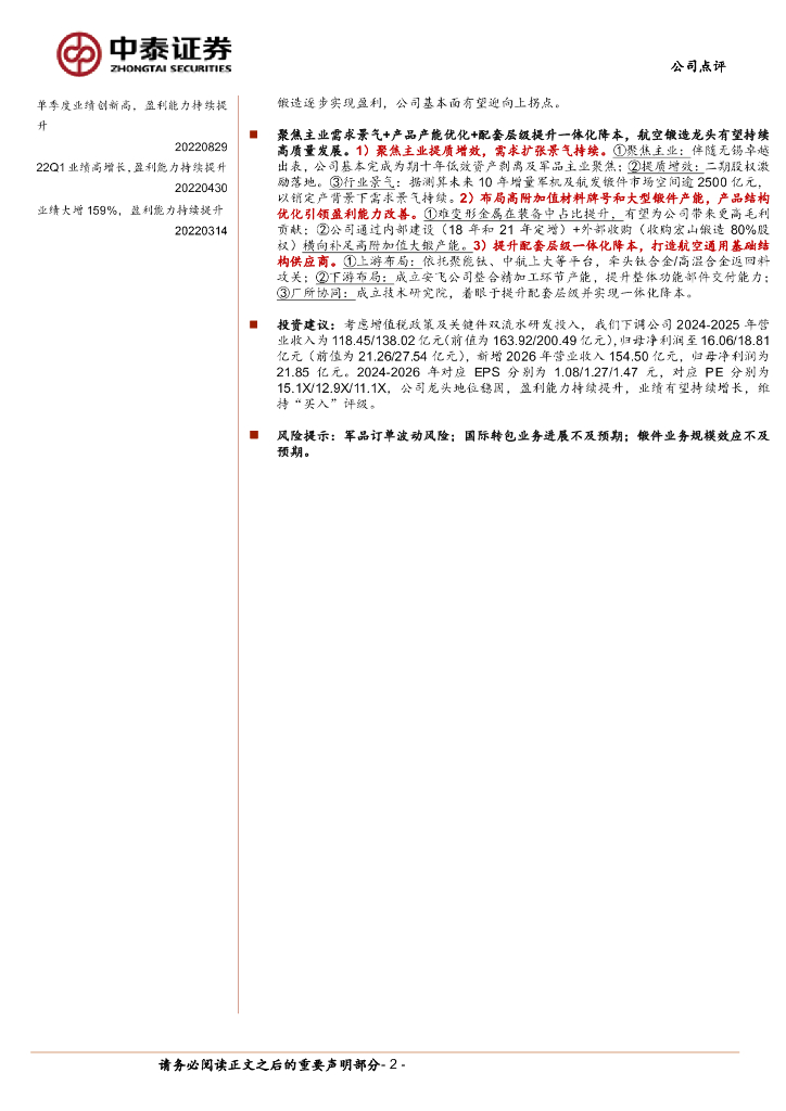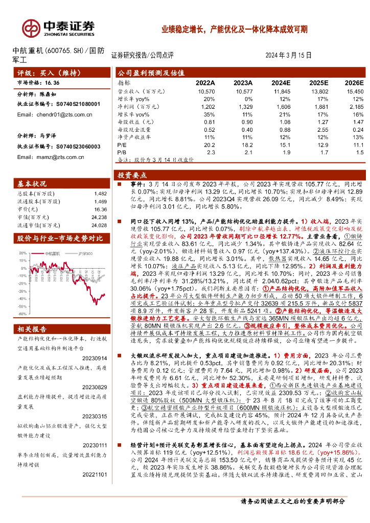 中泰证券:中航重机(600765)-业绩稳定增长,产能优化及一体化降本成效可期.pdf