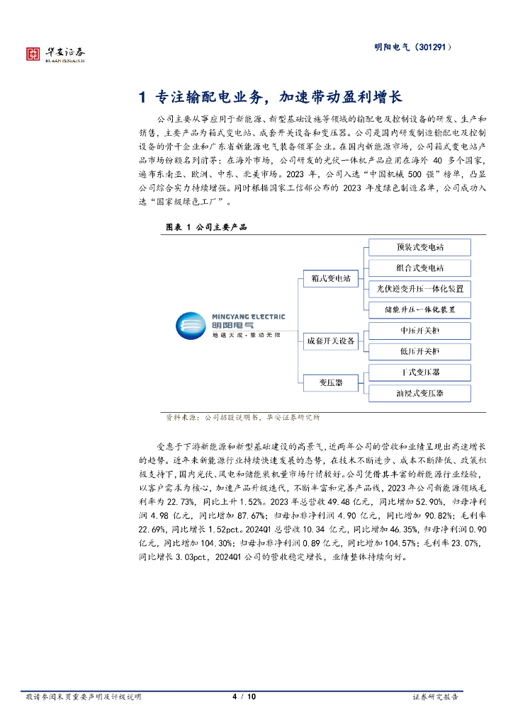 华安证券:明阳电气(301291)-需求超预期增长,公司业绩未来可期.pdf