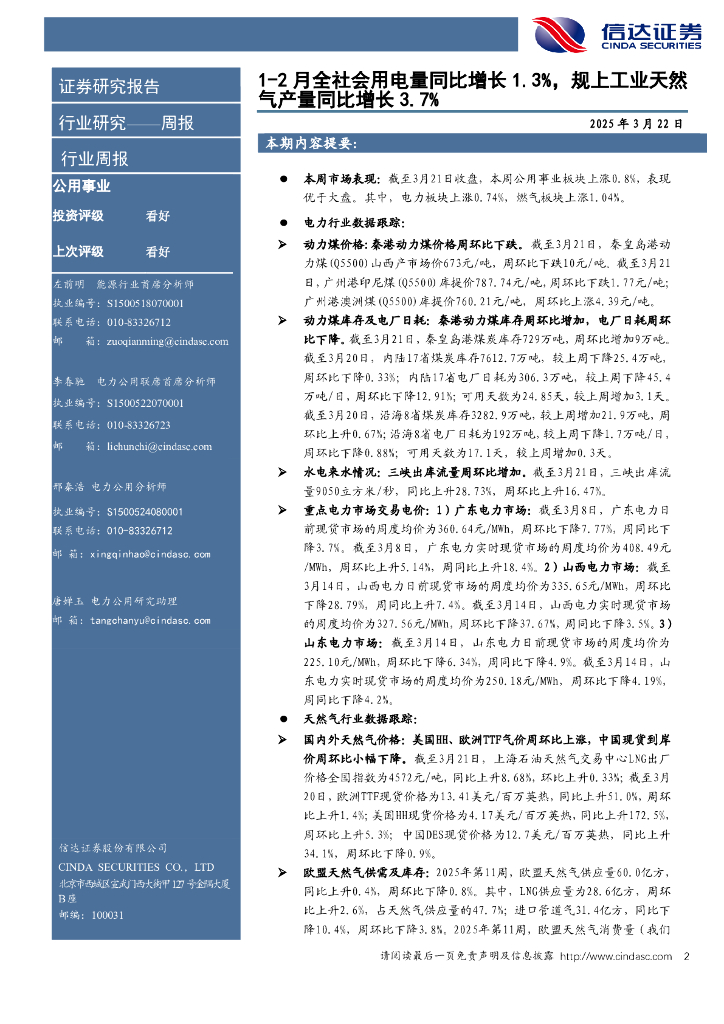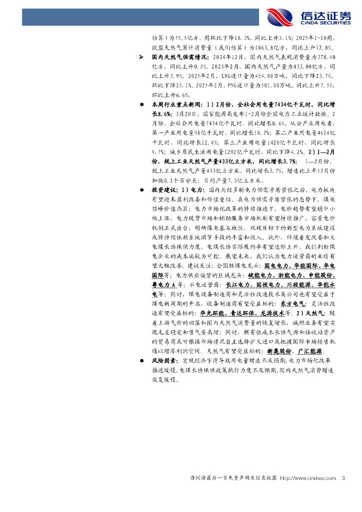 信达证券:公用事业—电力天然气周报:1-2月全社会用电量同比增长1.3%,规上工业天然气产量同比增长3.7%.pdf