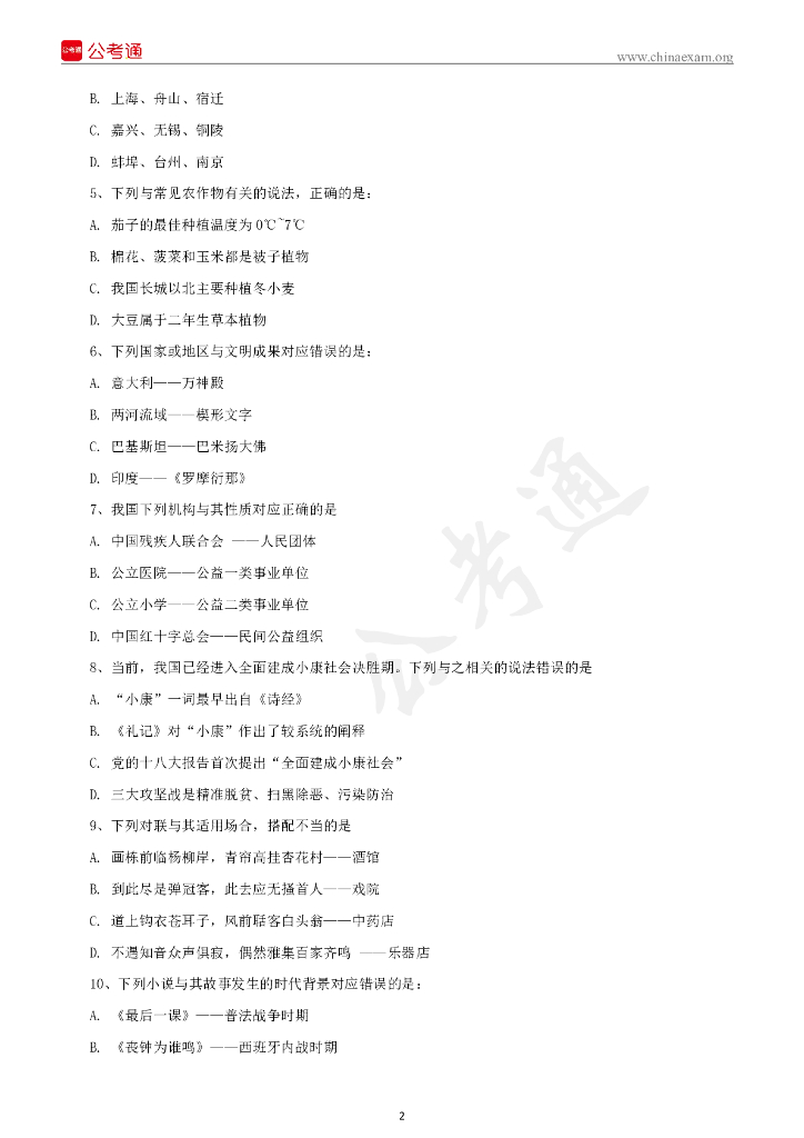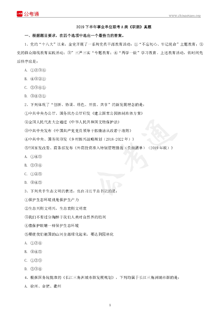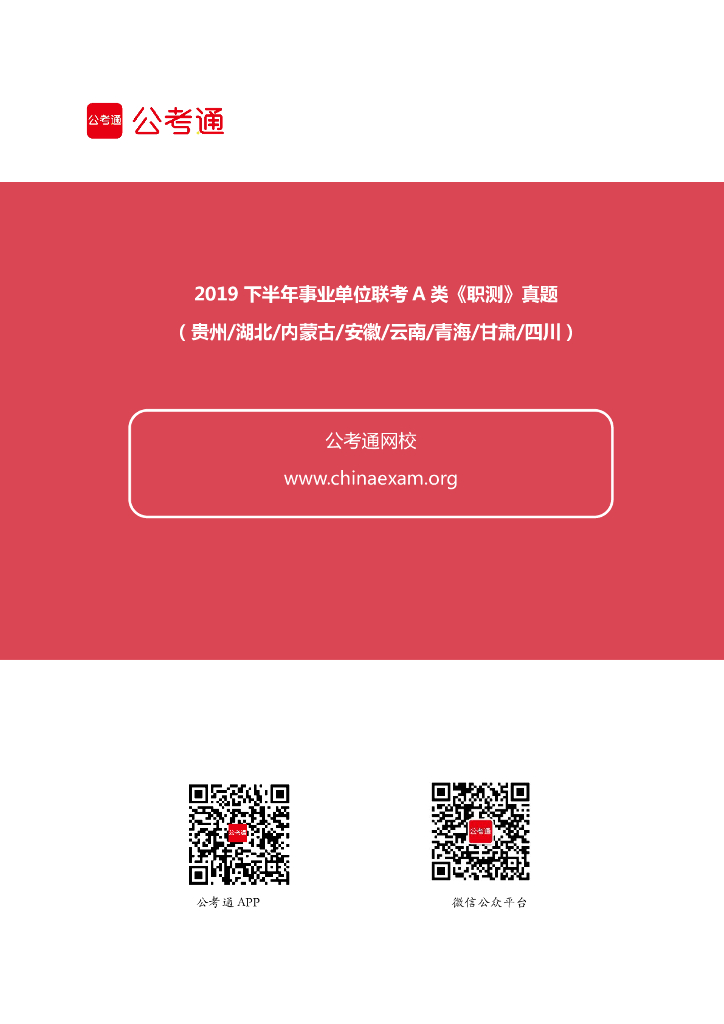 2019下半年事业单位联考A类《职业能力倾向测验》真题.pdf