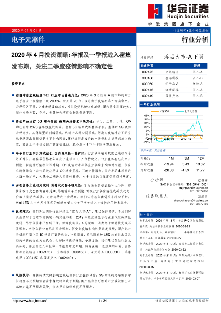 华金证券:电子元器件2020年4月投资策略:年报及一季报进入密集发布期,关注二季度疫情影响不确定性.pdf