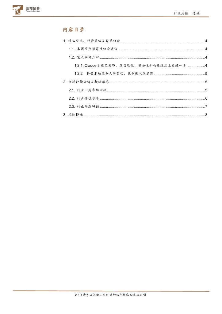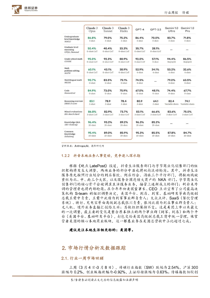 德邦证券:传媒互联网行业周报:Claude3模型发布;抖音本地业务人事变动.pdf
