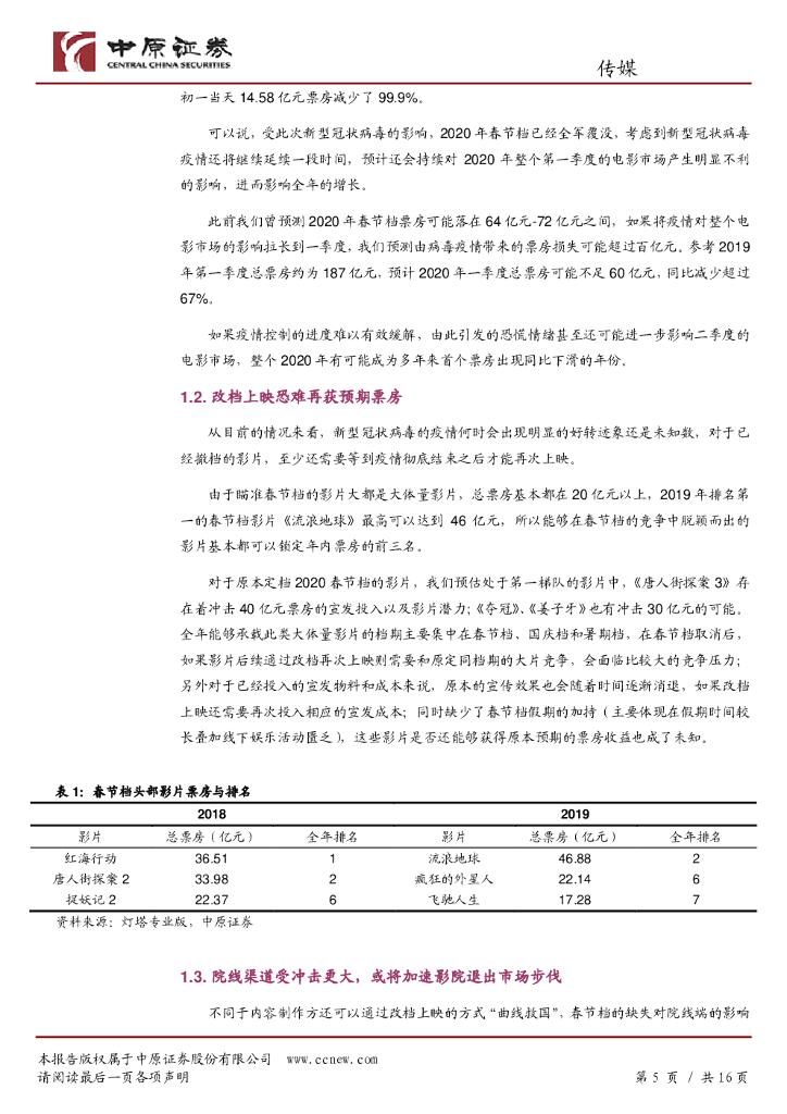 中原证券:传媒行业点评报告:疫情影响2020年影市,游戏公司Q1业绩或将超预期.pdf