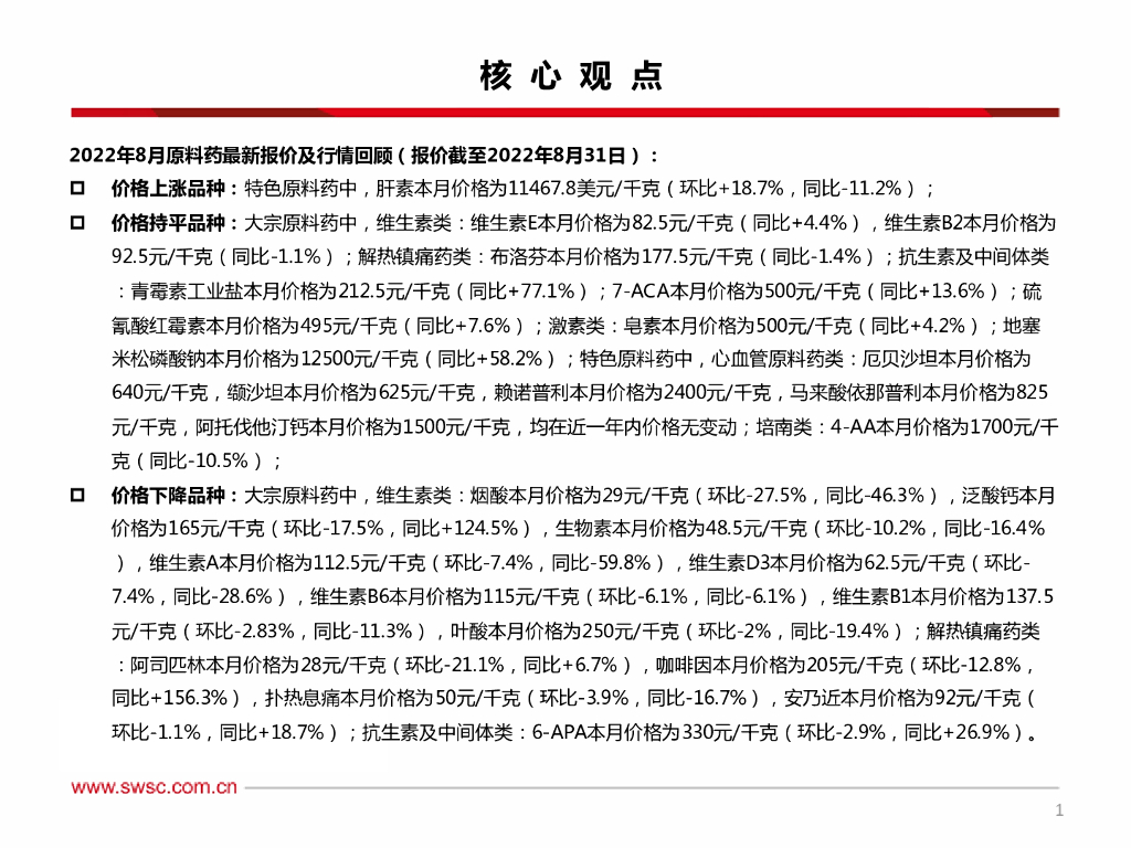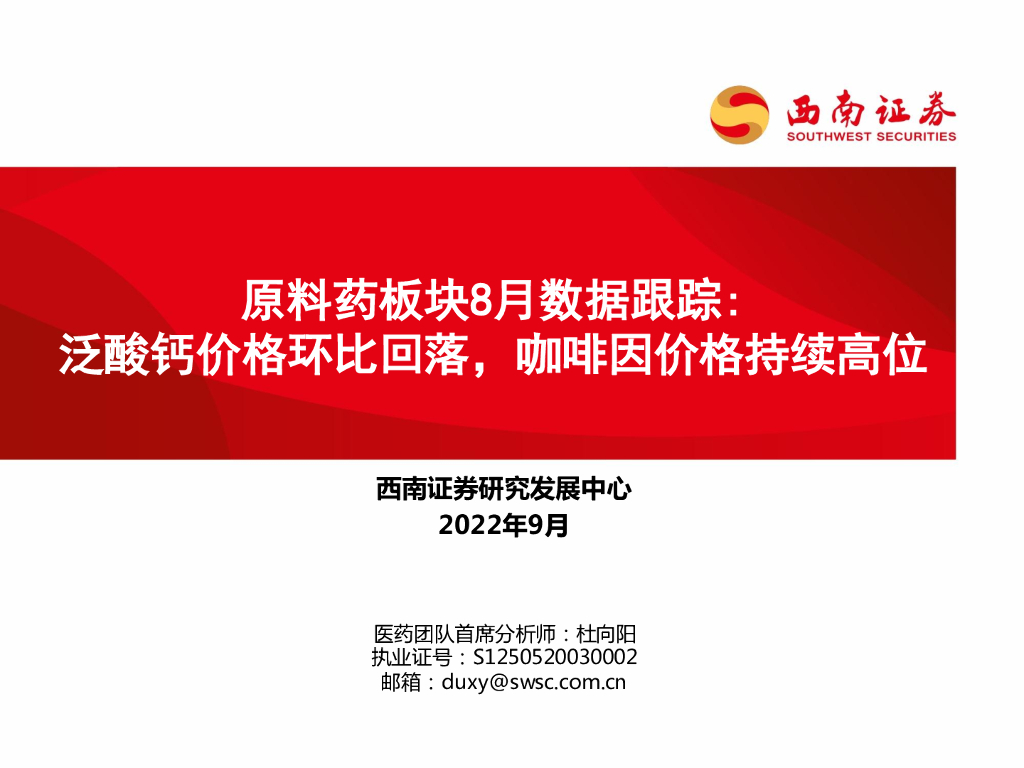 西南证券:原料药板块8月数据跟踪:泛酸钙价格环比回落,咖啡因价格持续高位.pdf