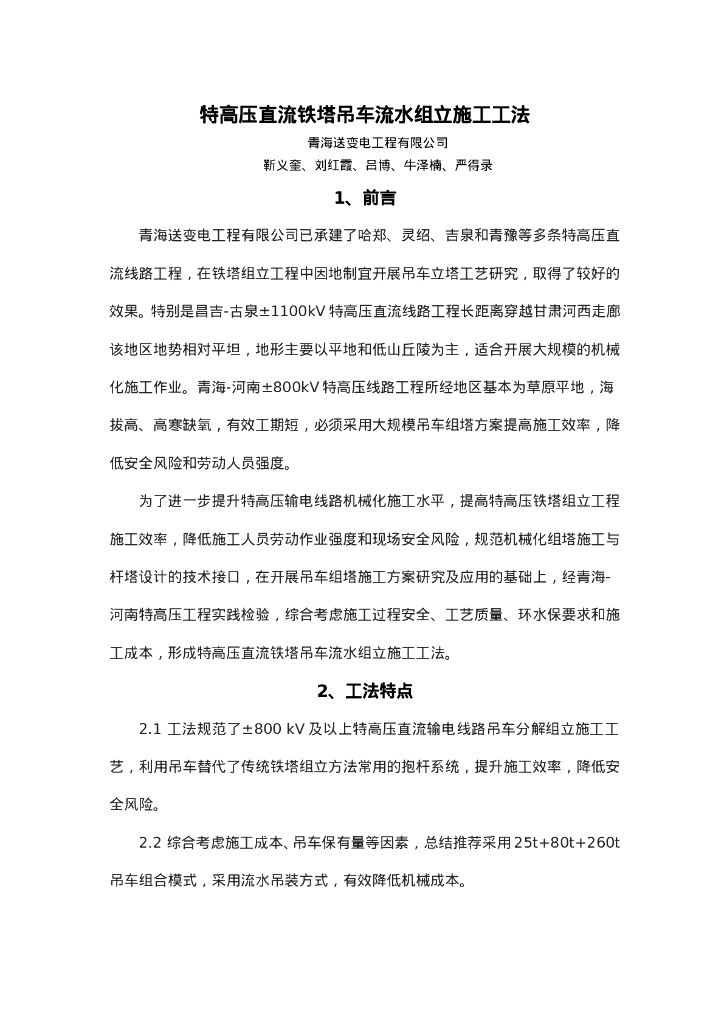 QHGF-2022071 特高压直流铁塔吊车流水组立施工工法.doc