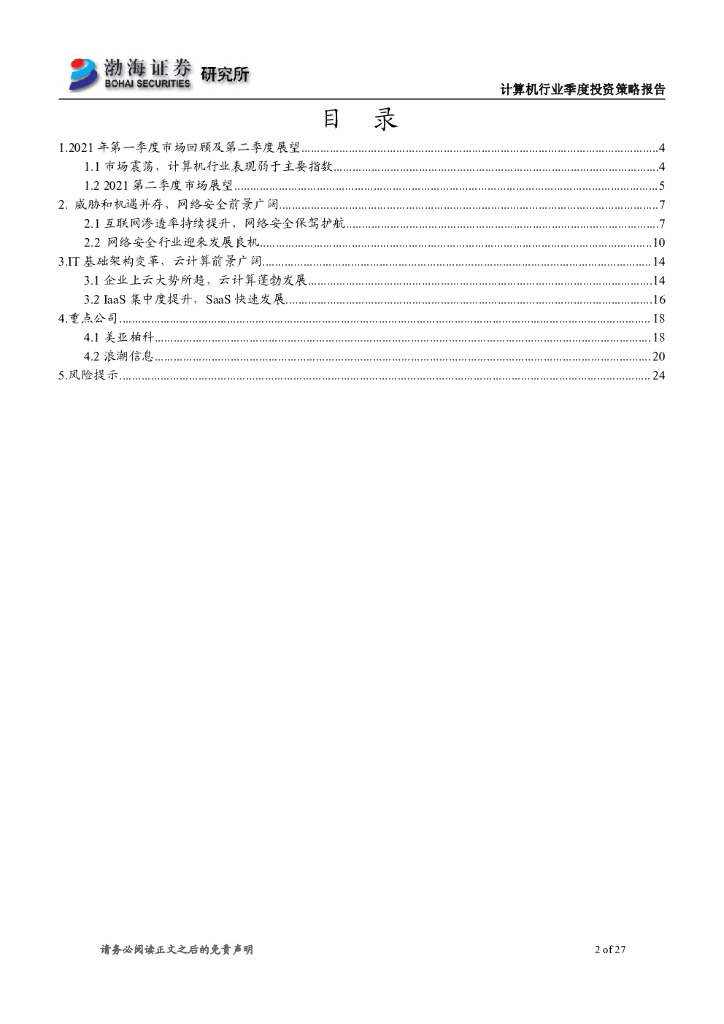 渤海证券:计算机行业二季度投资策略报告:静待花开,关注网络安全和云计算.pdf
