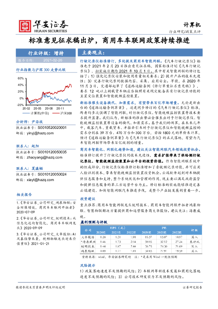 华安证券:计算机行业:标准意见征求稿出炉,商用车车联网政策持续推进.pdf