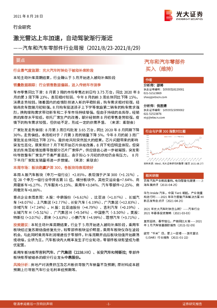 光大证券:汽车和汽车零部件行业周报:激光雷达上车加速,自动驾驶渐行渐近.pdf