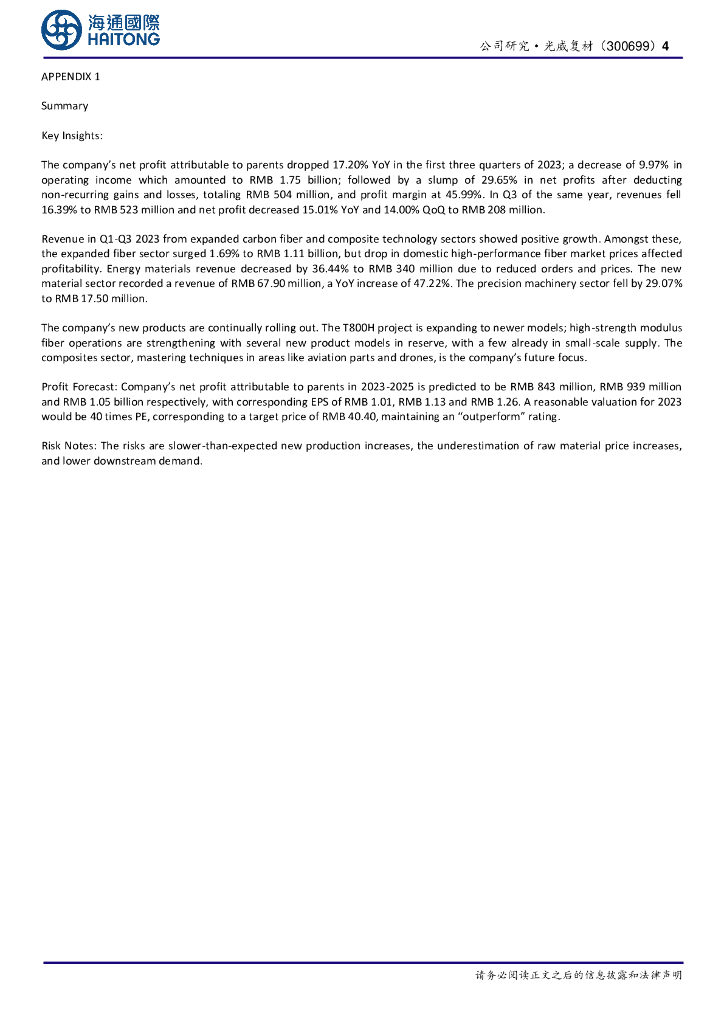 海通国际:光威复材(300699)-公司季报点评:公司前三季度归母净利润同比下降,新产品陆续放量.pdf