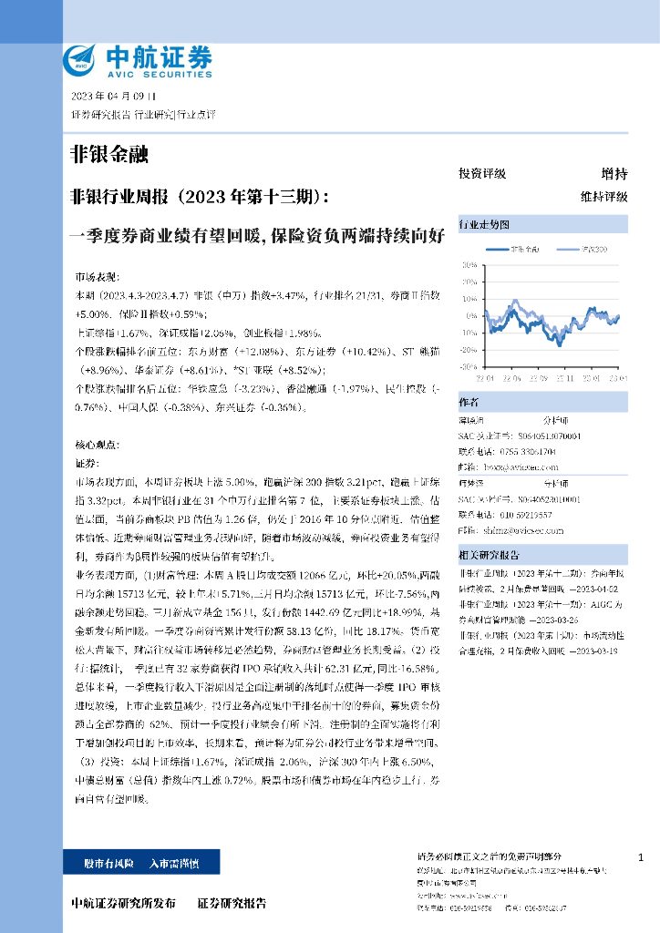 中航证券:非银行业周报(第十三期):一季度券商业绩有望回暖,保险资负两端持续向好.pdf