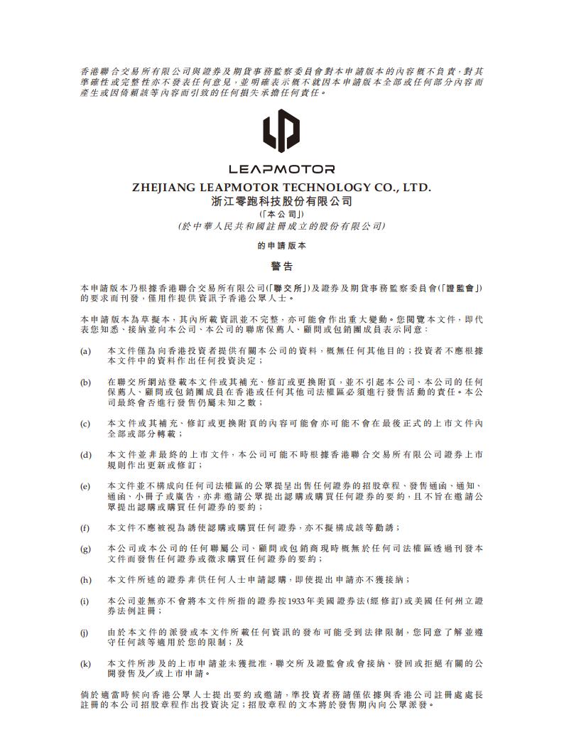 LeapMotor浙江零跑汽车科技港股IPO上市招股说明书:2021年总收益31.32亿元.pdf