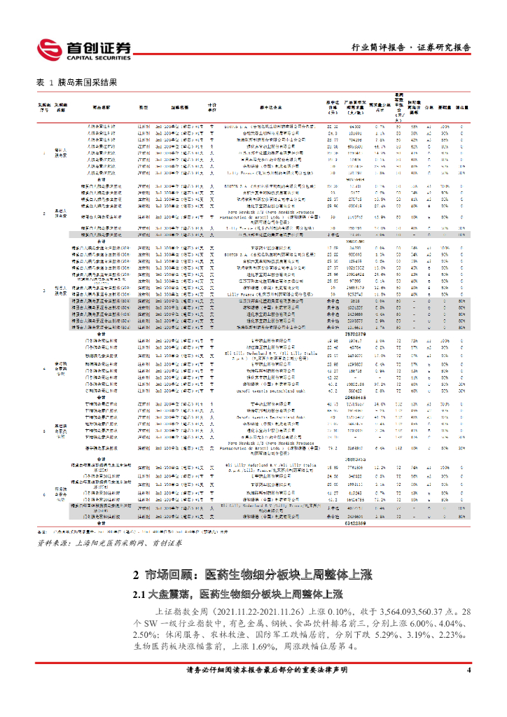 首创证券:医药行业周报:胰岛素国采落地,正式开始国产逐步替代步伐.pdf
