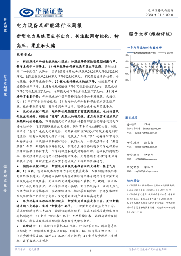 华福证券:电力设备及新能源行业周报:新型电力系统蓝皮书出台,关注配网智能化、特高压、柔直和大储.pdf