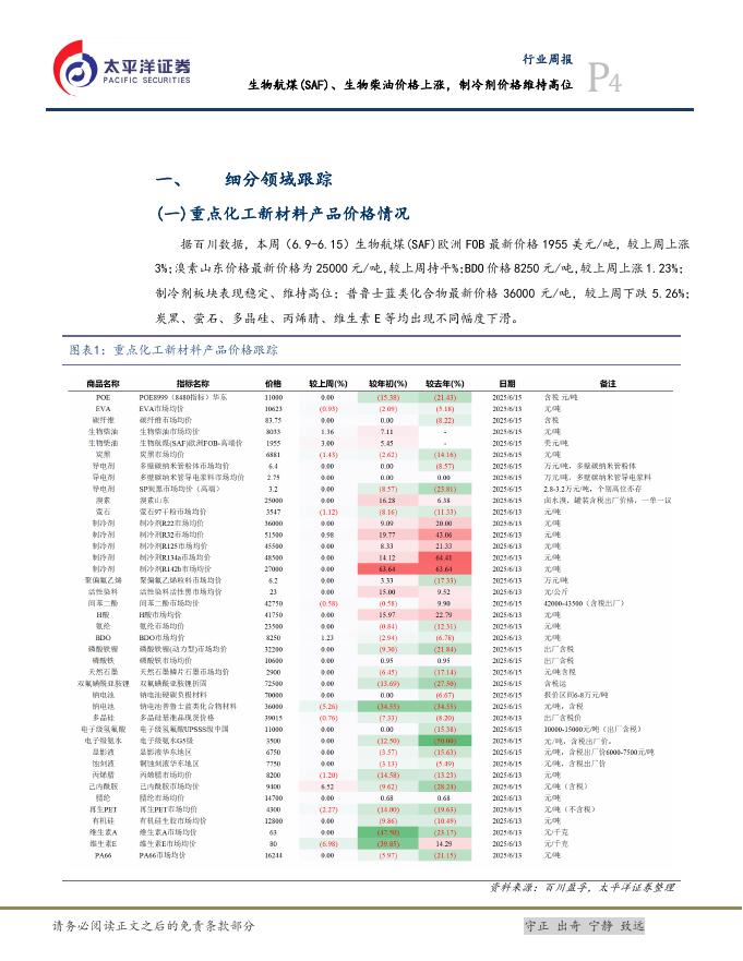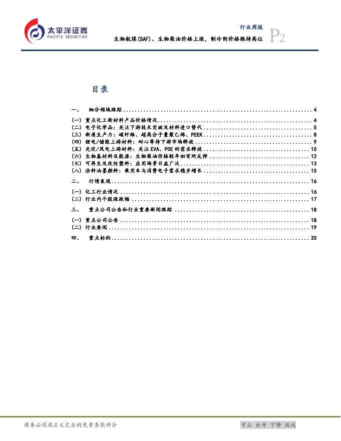 太平洋证券:化工新材料周报:生物航煤(SAF)、生物柴油价格上涨,制冷剂价格维持高位.pdf