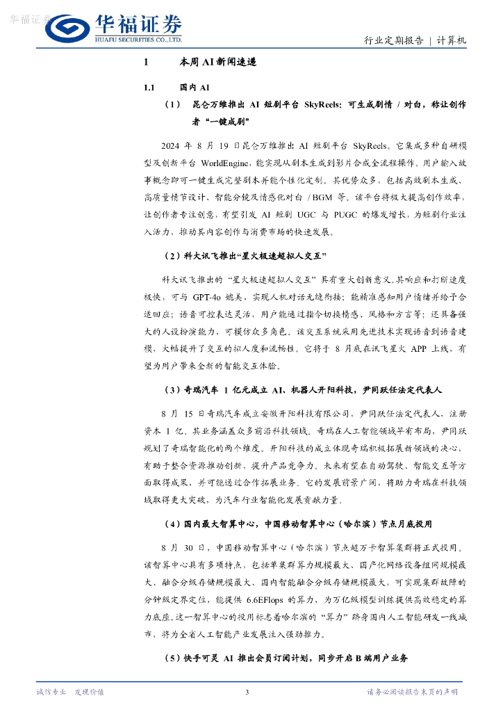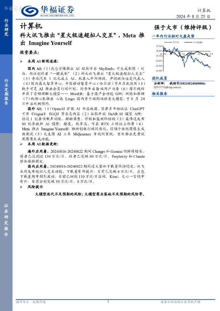 华福证券:计算机行业定期报告:科大讯飞推出“星火极速超拟人交互”,Meta推出ImagineYourself.pdf