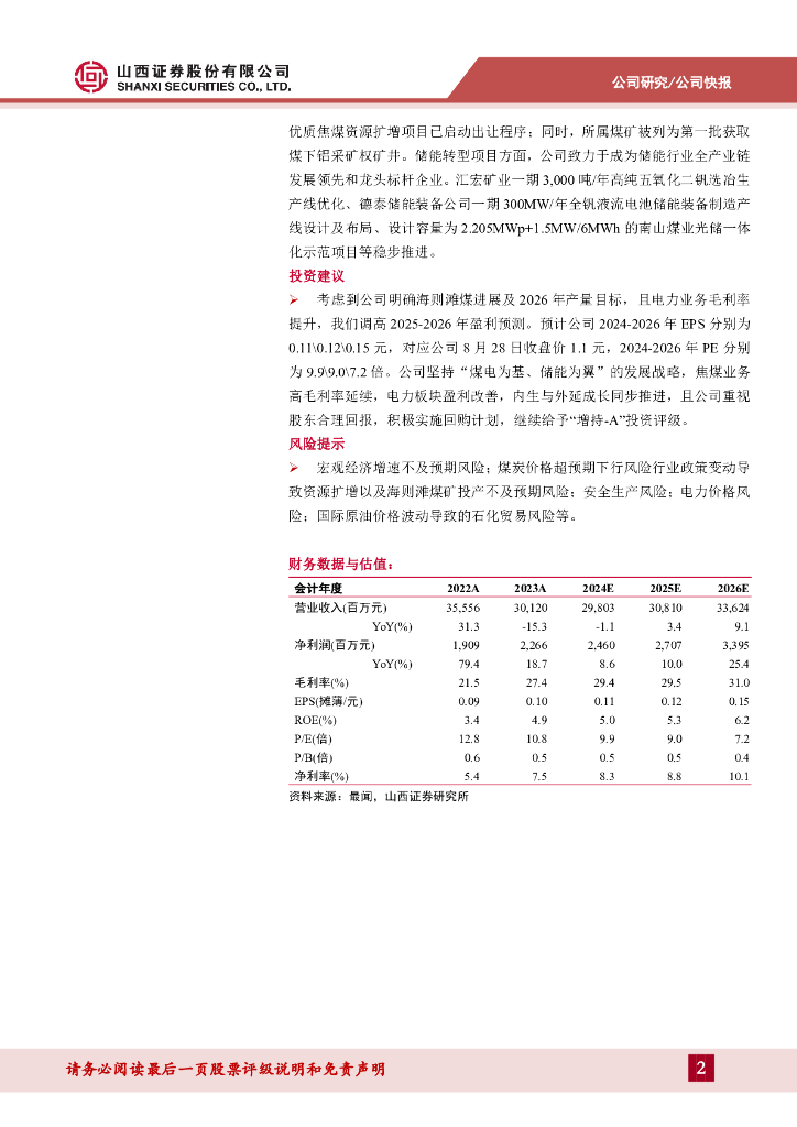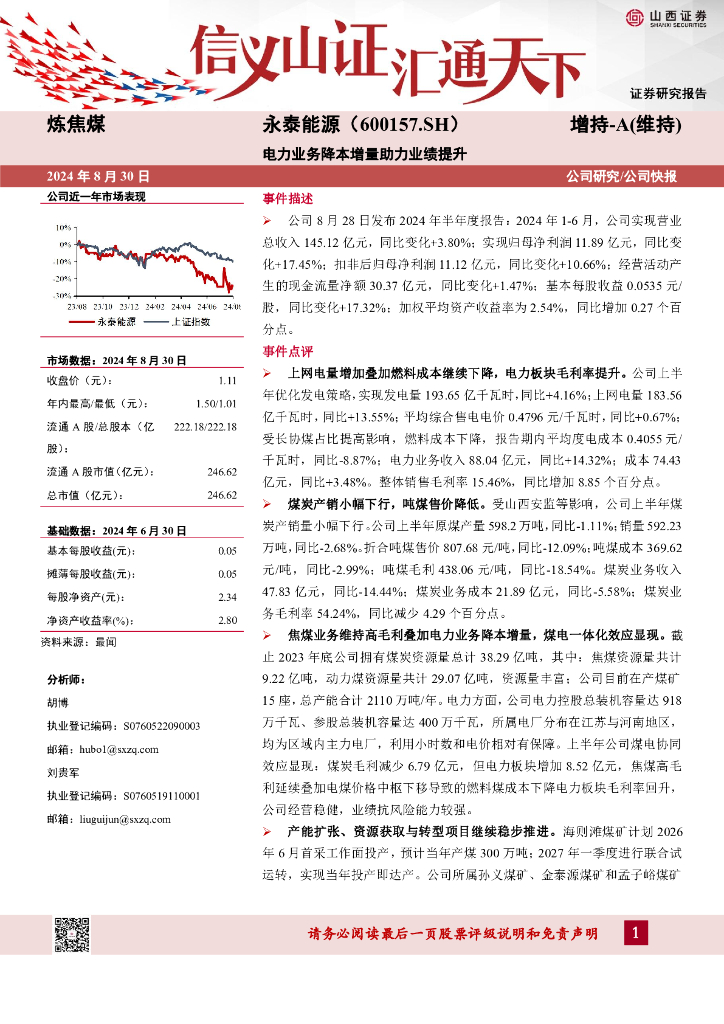 山西证券:永泰能源(600157)-电力业务降本增量助力业绩提升.pdf