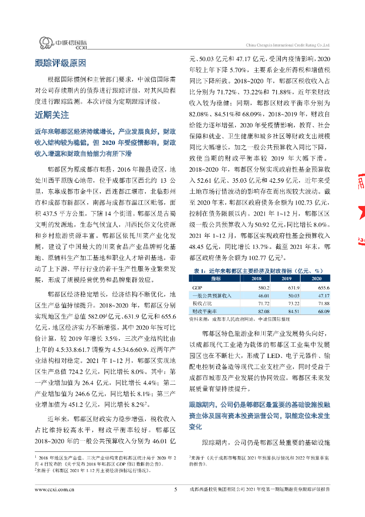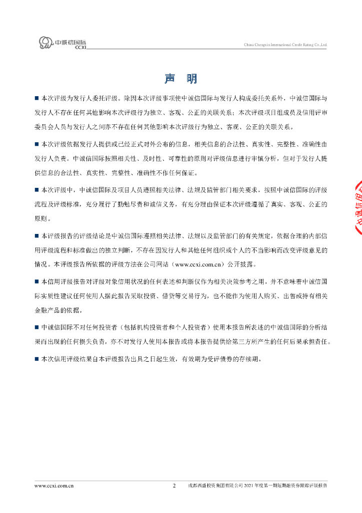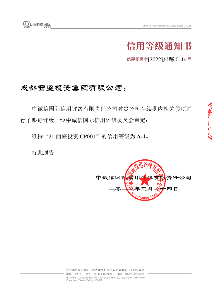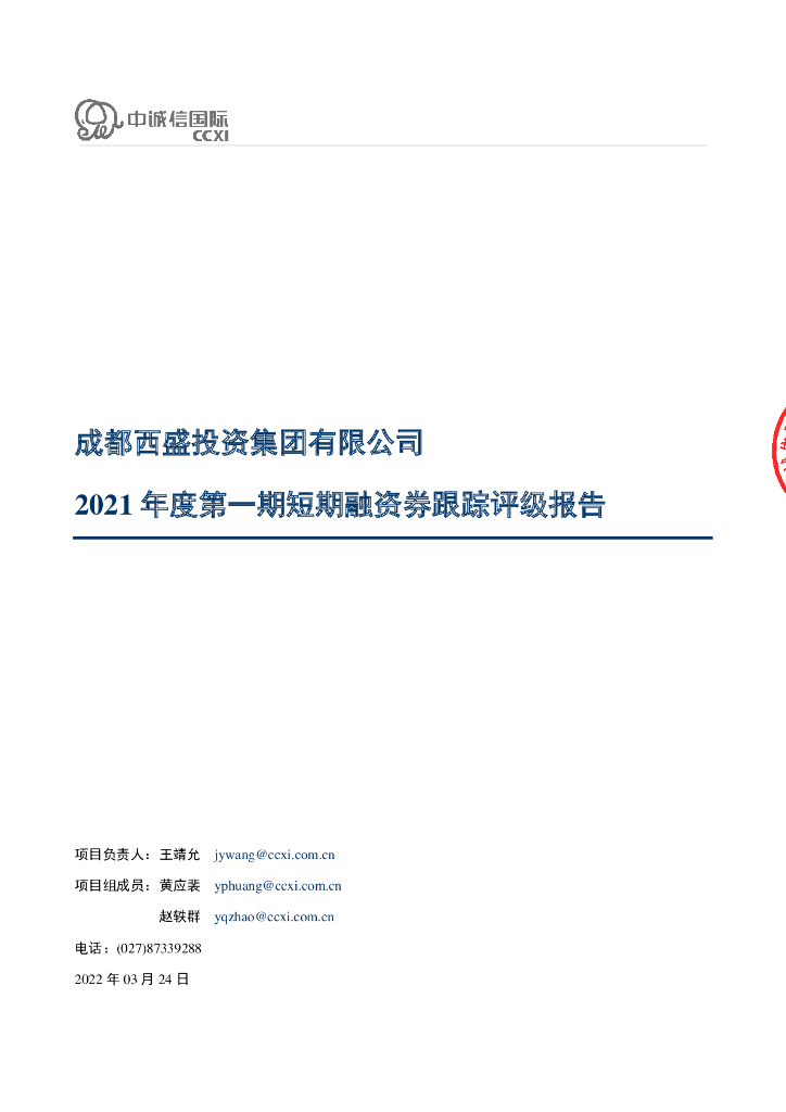 中诚信:成都西盛投资集团有限公司2021年度第一期短期融资券跟踪评级报告.pdf