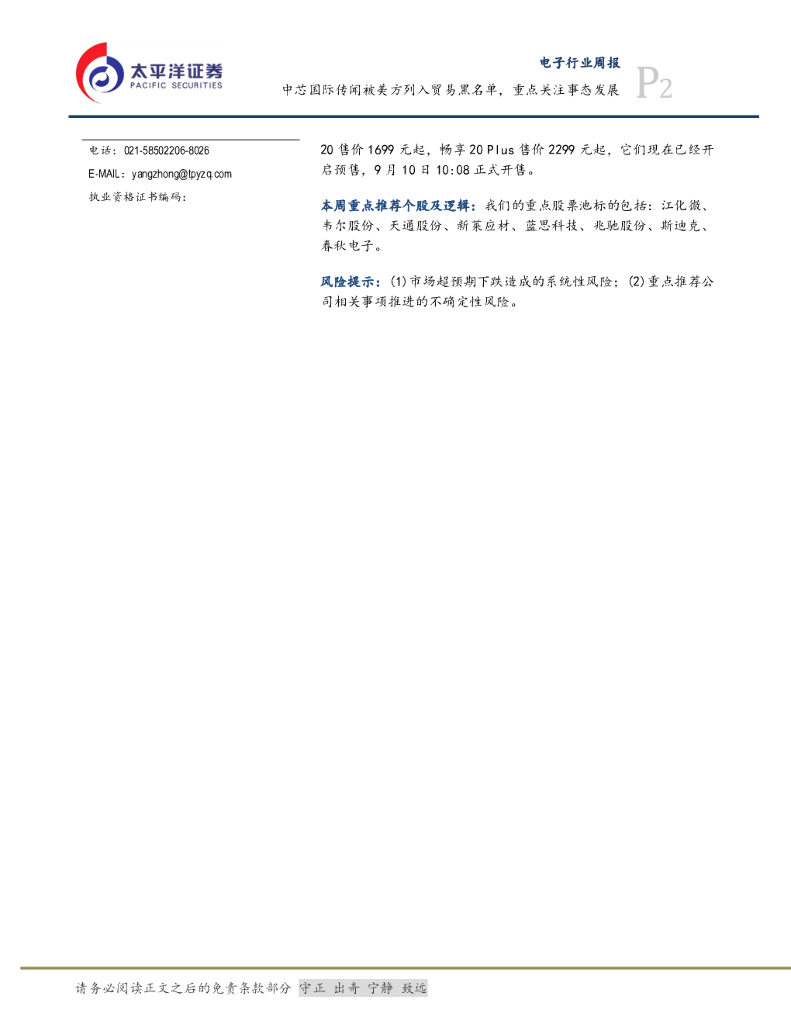 太平洋证券:电子设备、仪器和元件行业周报:中芯国际传闻被美方列入贸易黑名单,重点关注事态发展.pdf