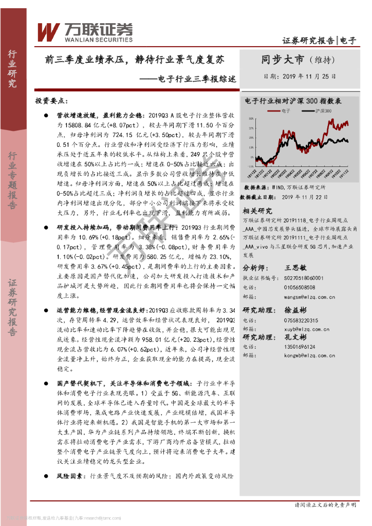 万联证券:电子行业三季报综述:前三季度业绩承压,静待行业景气度复苏.pdf