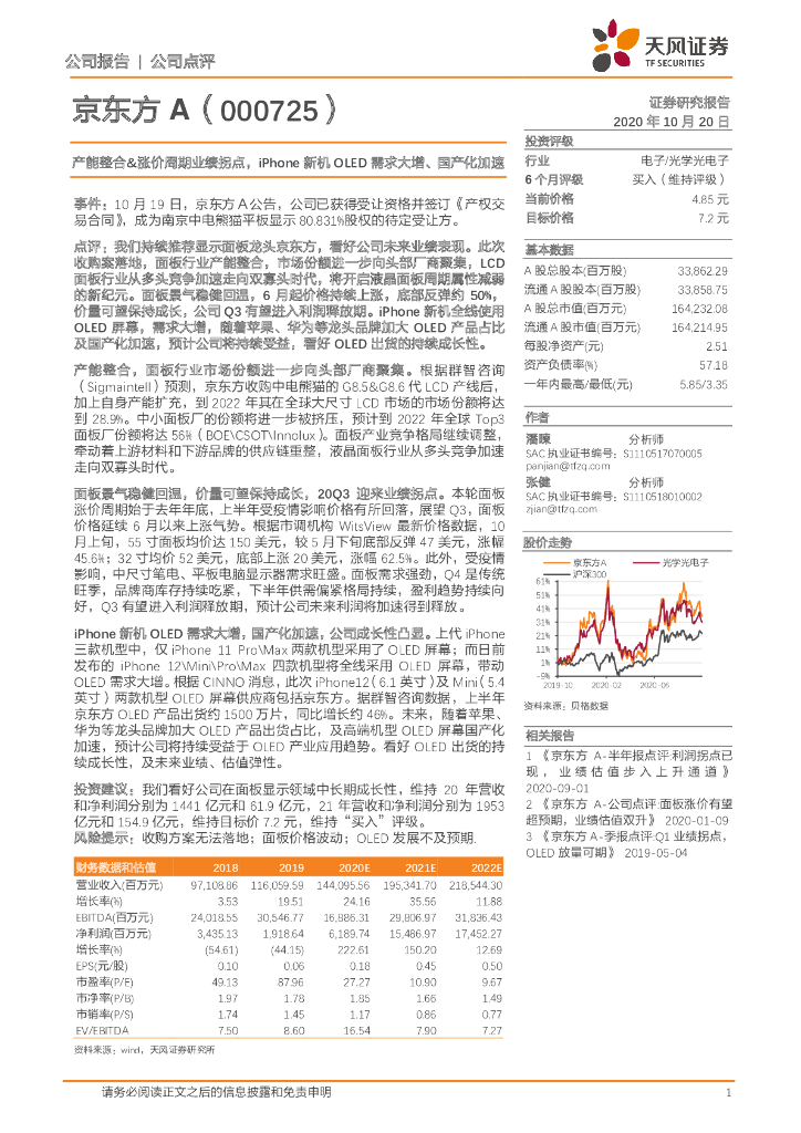 天风证券:京东方A(000725)-产能整合&涨价周期业绩拐点,iPhone新机OLED需求大增、国产化加速.pdf