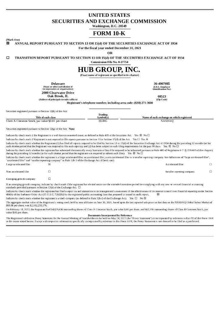 Hub Group Inc(HUBG)2021财年年度报告(英文版).pdf
