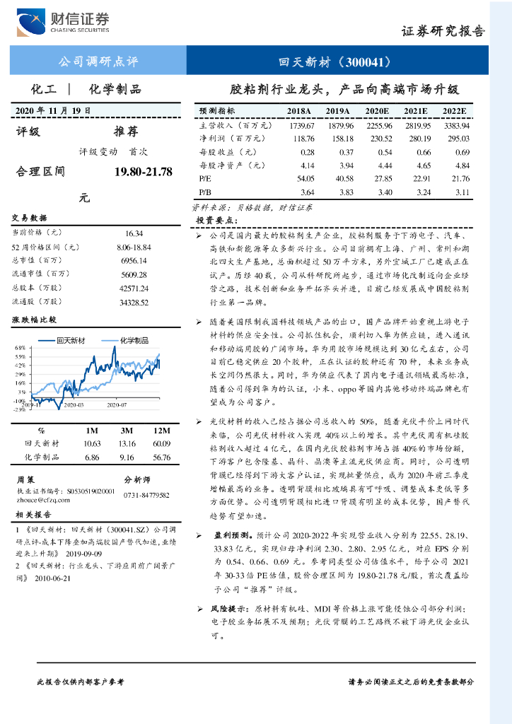 财信证券:回天新材(300041)-胶粘剂行业龙头,产品向高端市场升级.pdf
