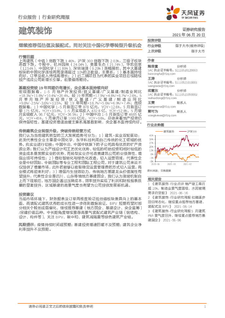 天风证券:建筑装饰行业研究周报:继续推荐低估值及装配式,同时关注中国化学等转型升级机会.pdf