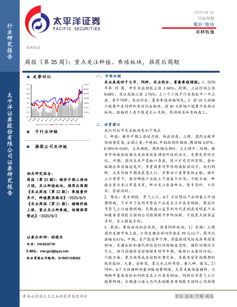 太平洋证券:农林牧渔周报(第35周):重点关注种植、养殖板块,推荐后周期.pdf