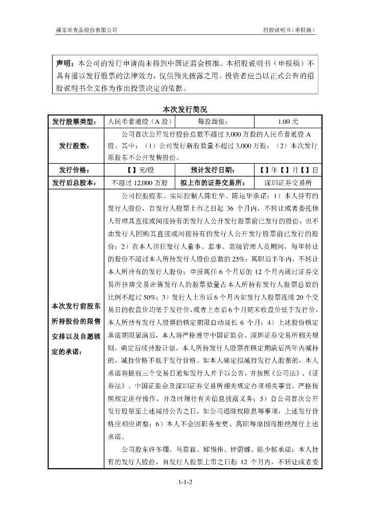 福家欢食品股份有限公司深交所主板IPO上市招股说明书.pdf