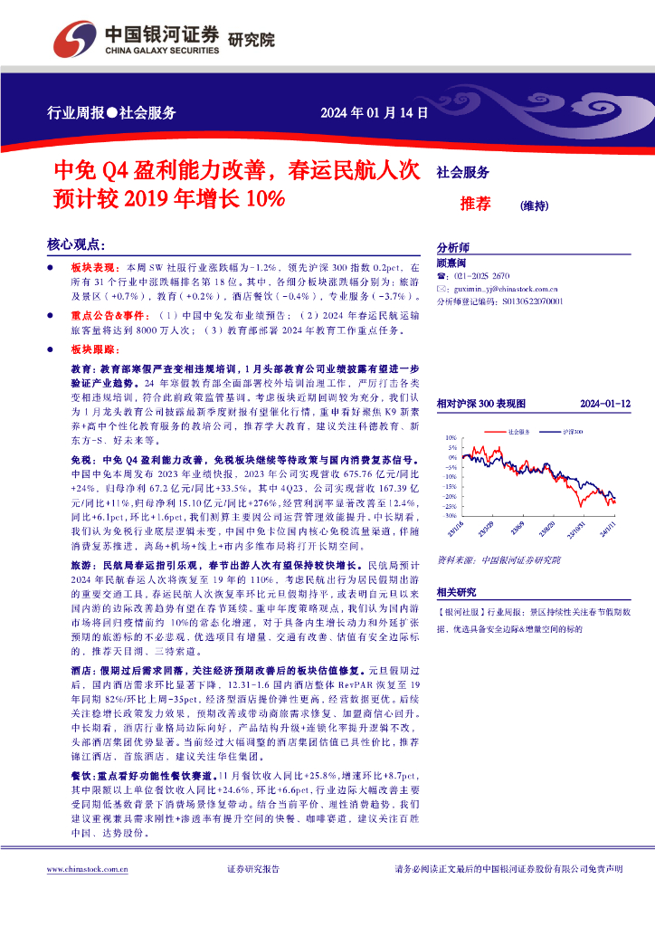 中国银河:社会服务行业周报:中免Q4盈利能力改善,春运民航人次预计较2019年增长10%.pdf