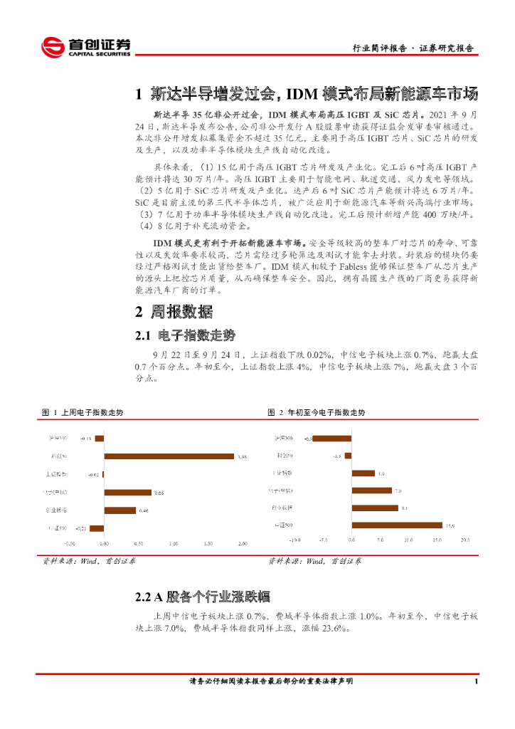 首创证券:电子行业简评报告:斯达半导增发过会,IDM模式布局新能源车市场.pdf
