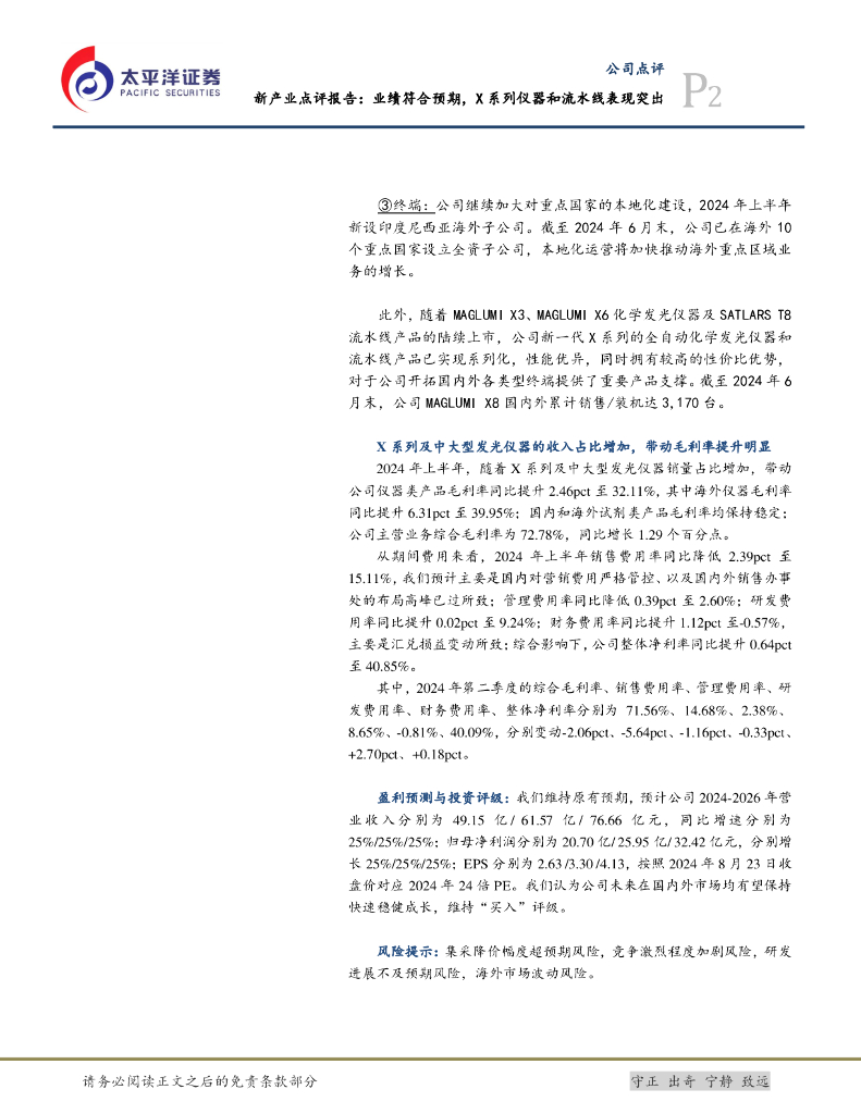 太平洋证券:新产业点评报告:业绩符合预期,X系列仪器和流水线表现突出.pdf