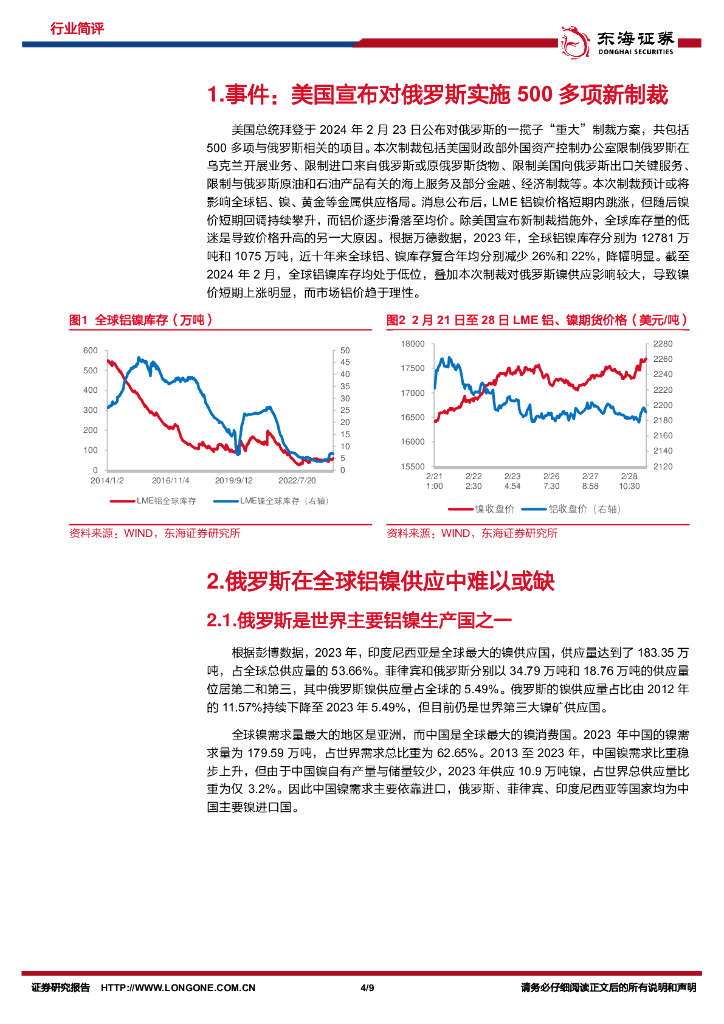 东海证券:有色金属研究系列(一):美国制裁俄罗斯铝镍对全球供应格局影响.pdf