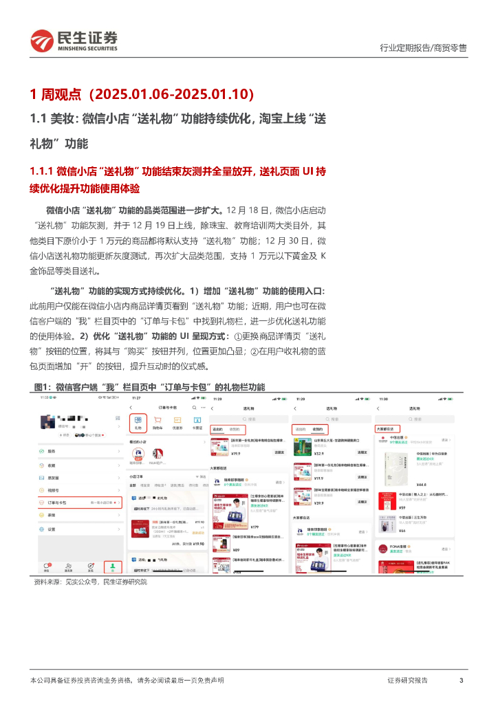 民生证券:零售周观点:微信小店“送礼物”功能持续优化,AI拍摄眼镜新品雷鸟V3发布.pdf