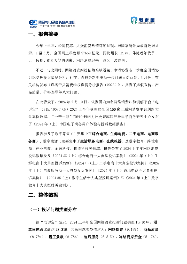 网经社:2024年上半年中国电子商务用户体验与投诉数据报告.pdf