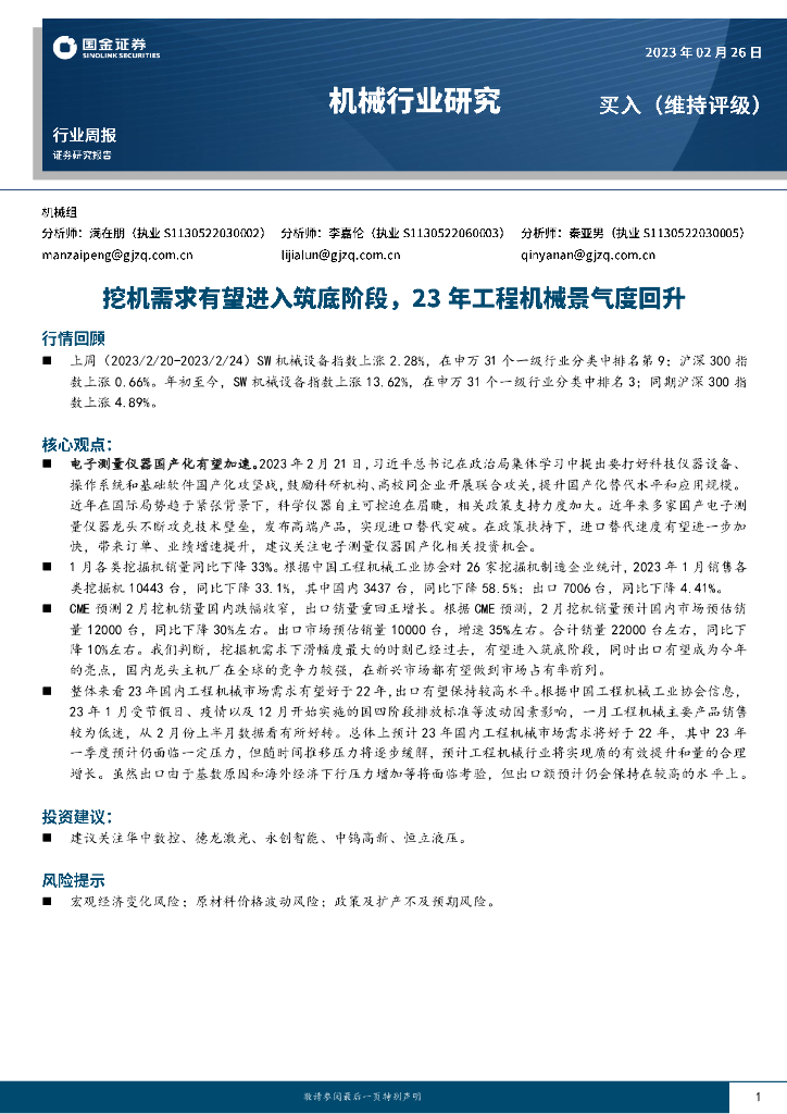 国金证券:机械行业研究:挖机需求有望进入筑底阶段,23年工程机械景气度回升.pdf