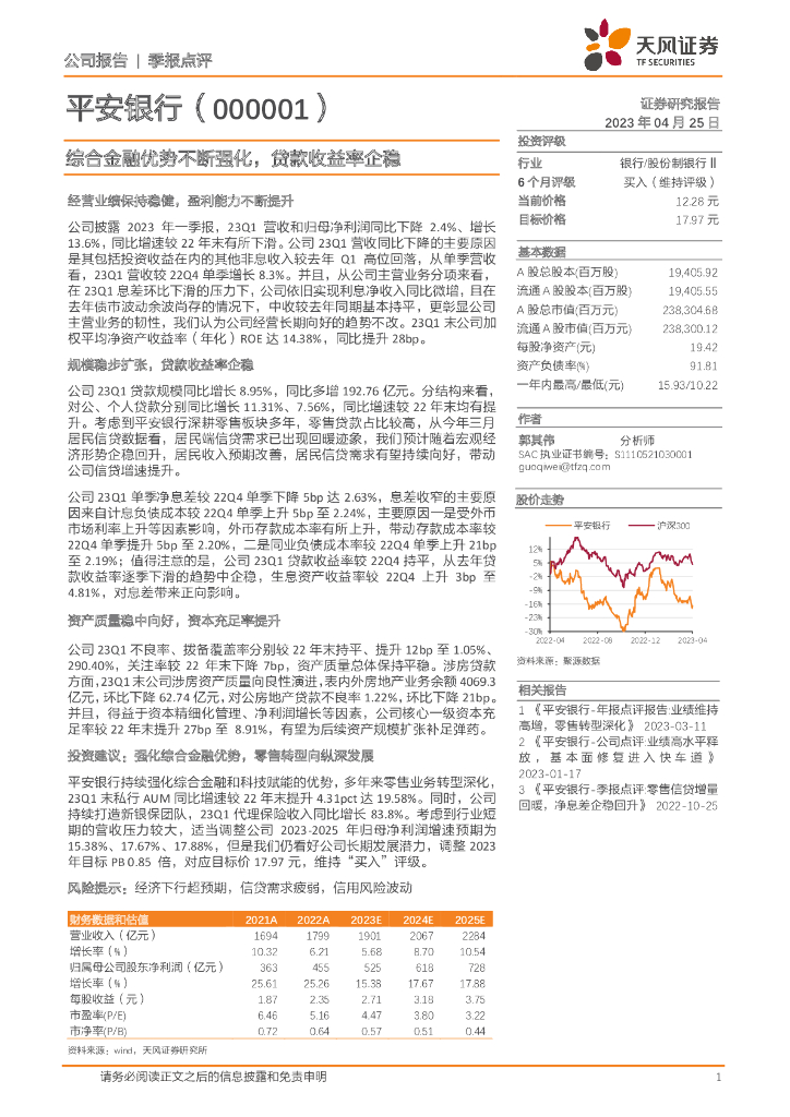 天风证券:平安银行(000001)-综合金融优势不断强化,贷款收益率企稳.pdf