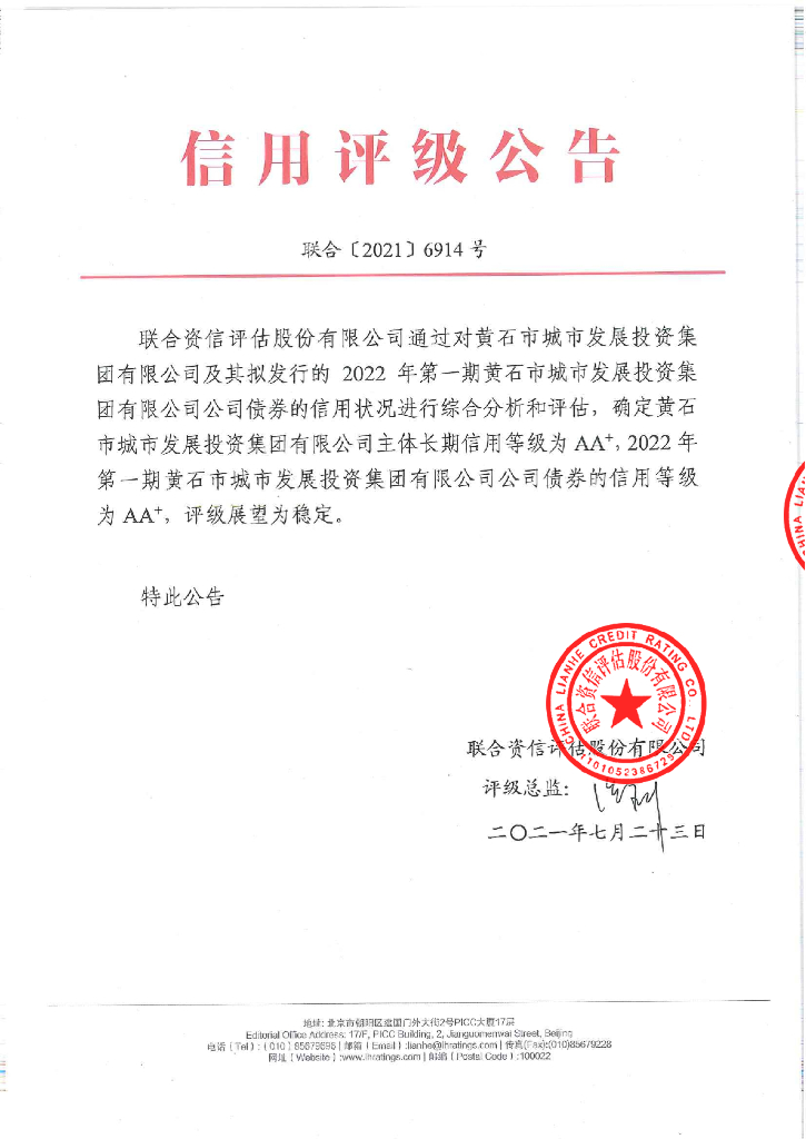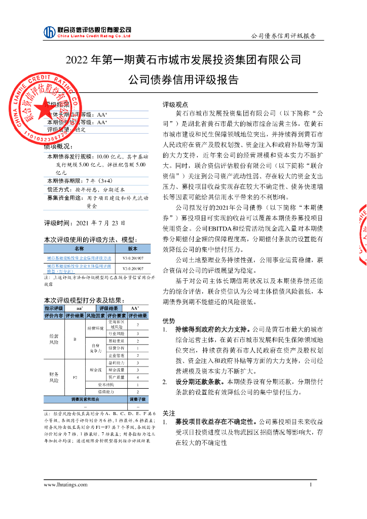 联合资信:2022年第一期黄石市城市发展投资集团有限公司公司债券信用评级报告.pdf