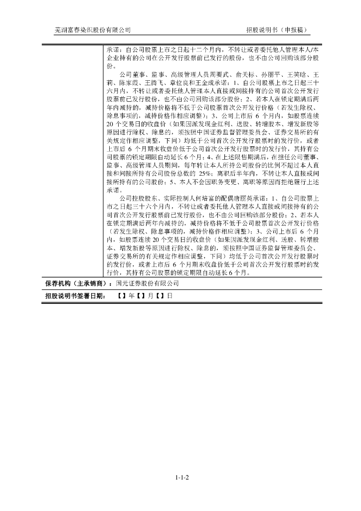 芜湖富春染织股份有限公司上交所主板IPO上市招股说明书.pdf