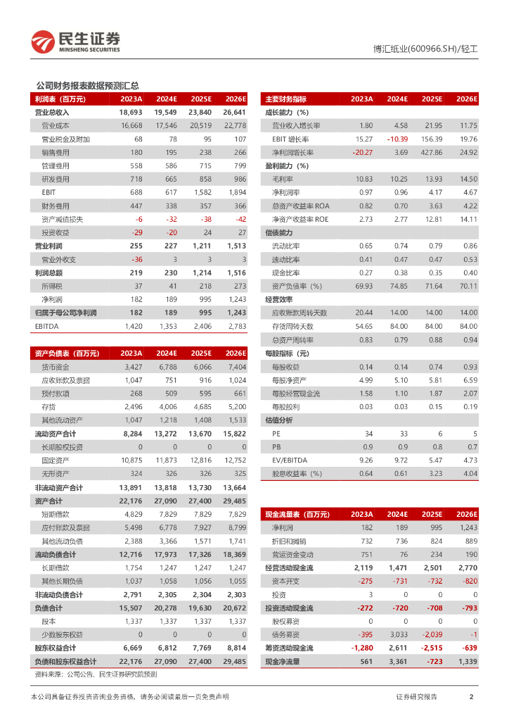 民生证券:博汇纸业(600966)-2024年三季报点评:业绩承压筑底,静待需求回暖盈利提升.pdf
