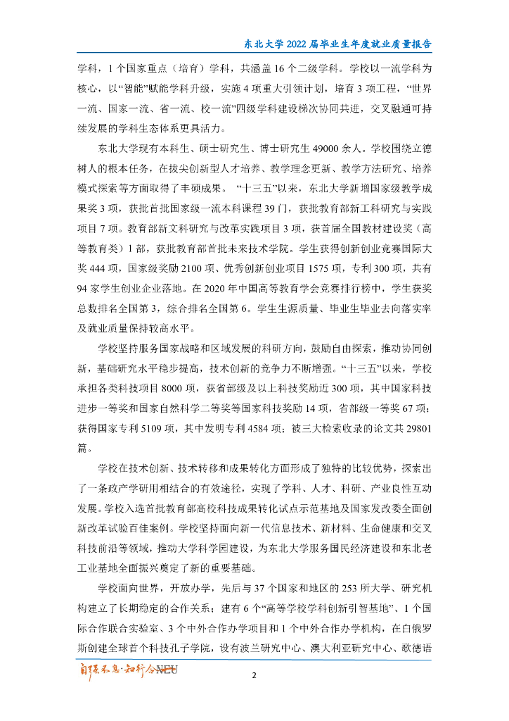 东北大学2022届毕业生年度就业质量报告.pdf
