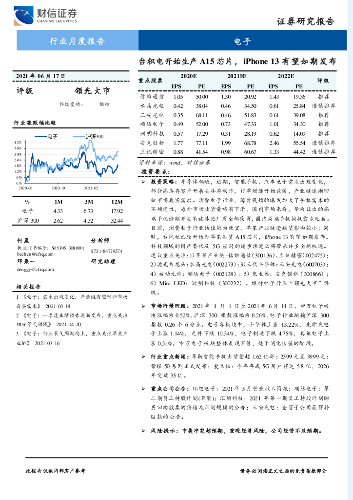财信证券:电子行业月度报告:台积电开始生产A15芯片,iPhone13有望如期发布.pdf