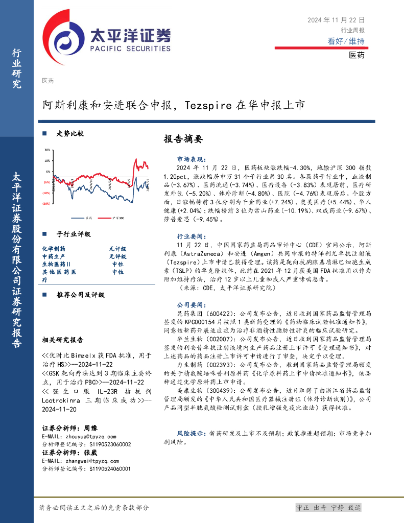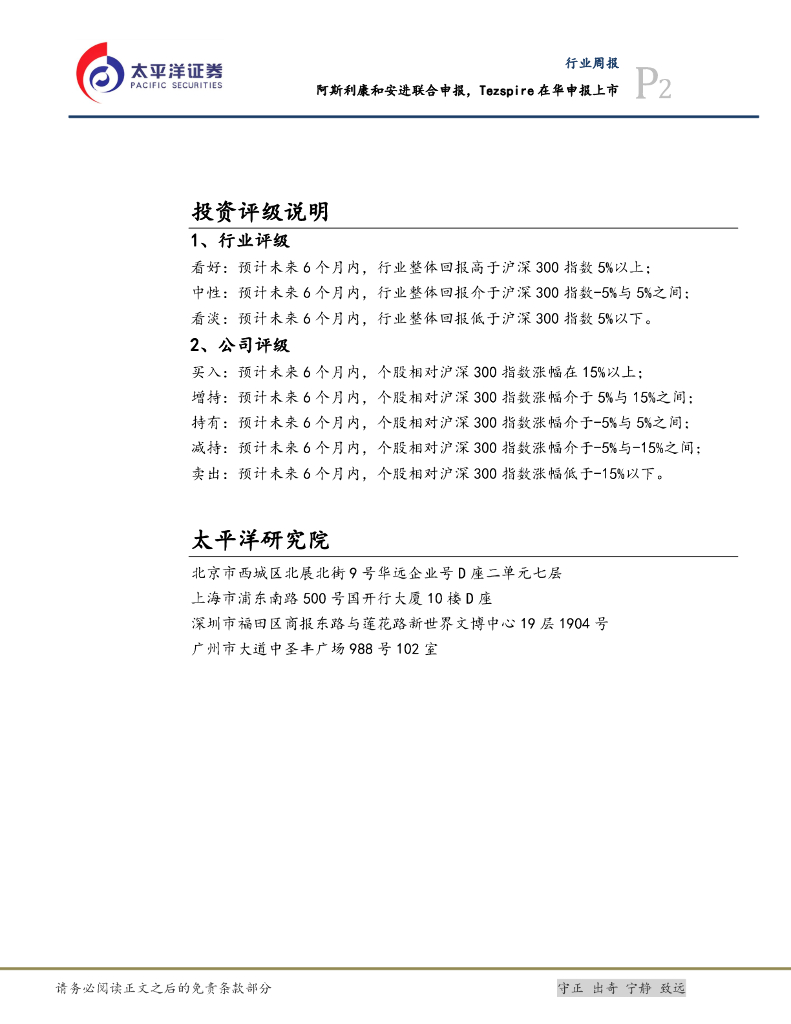 太平洋证券:医药行业周报:阿斯利康和安进联合申报,Tezspire在华申报上市.pdf