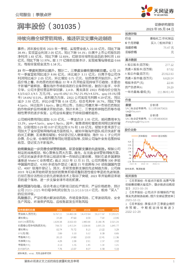 天风证券:润丰股份(301035)-持续完善全球营销网络,推进研发支撑先进制造.pdf