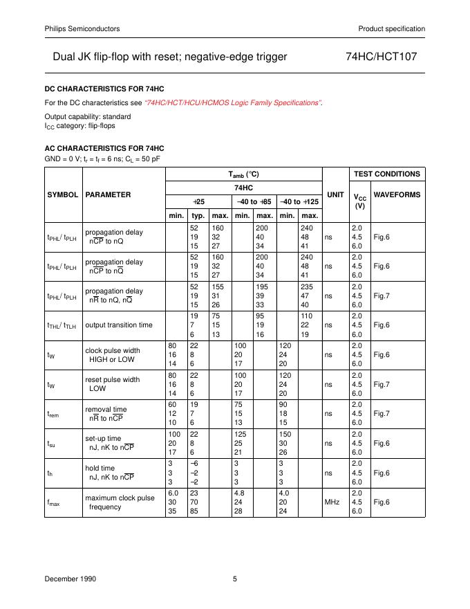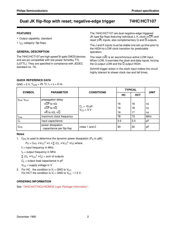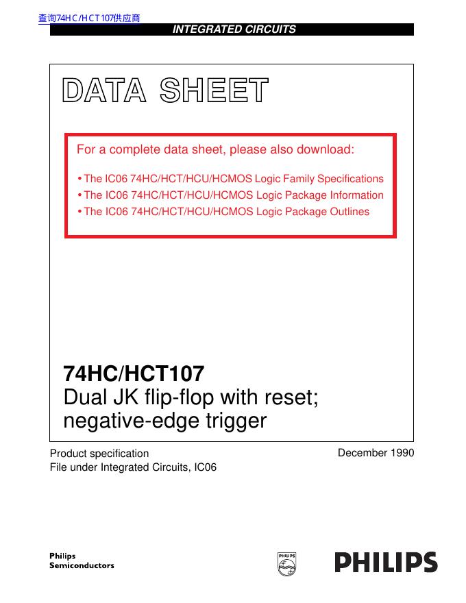 PHILIPS 74HC/HCT107 Dual JK flip-flop with reset; negative-edge trigger 数据手册.pdf