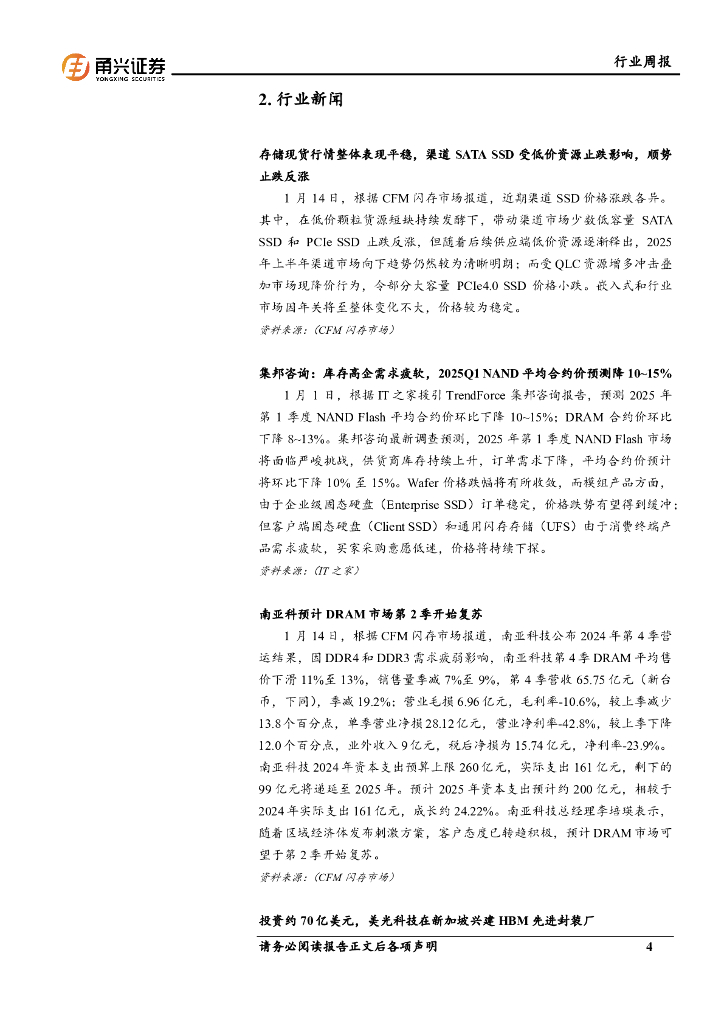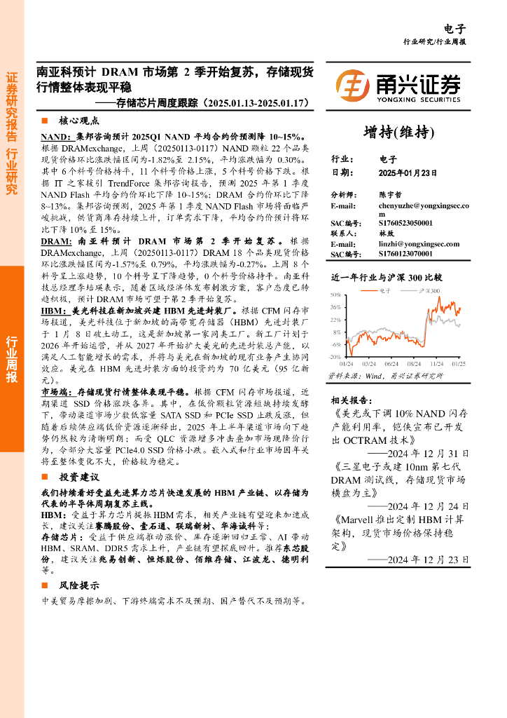 甬兴证券:电子行业存储芯片周度跟踪:南亚科预计DRAM市场第2季开始复苏,存储现货行情整体表现平稳.pdf